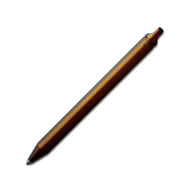 The body has a double structure of brass and acrylic, and the pen tip appears when you twist the knob on the crown, adding a subtle playful touch.The body is available in 10 different colors.