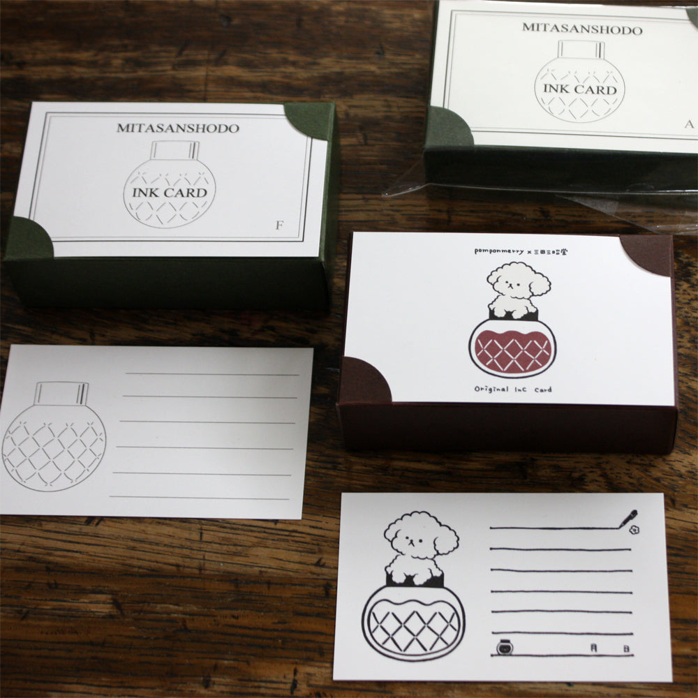 名刺サイズのオリジナルインクカード! サイズだけでなく名刺のようなしっかりした厚紙なので描く時に折れずにしっかりした書き味が得られます。用紙はクリームとホワイト、種類も6種類の中から選べます!